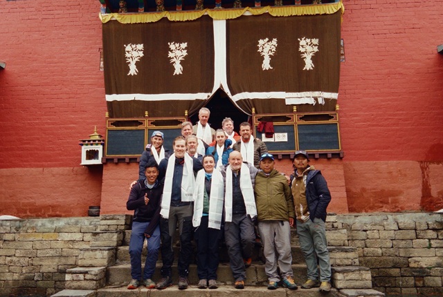 We descended to the river and then began a big climb after lunch to Tengboche — one of the most sacred and ancient monasteries in the Khumbu. We were lucky enough to receive a blessing inside. White katas draped around our necks and sundis from a lama. It’s a hard thing to describe, standing in that space with this group, on this journey. Let’s just say nobody was in a hurry to leave.