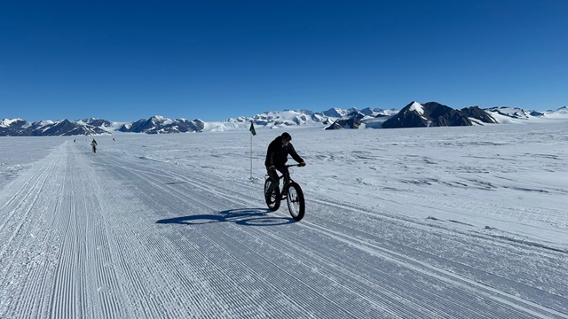 Tim and I spent a restful day and night at Union Glacier. It was another very calm and sunny day here… easy to enjoy. We alternated eating and napping with attending lectures and riding fat bikes on a groomed 10K track.