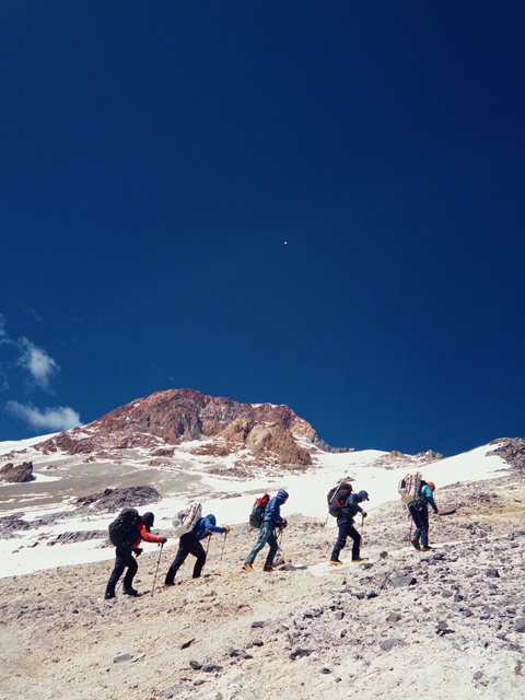 Led by RMI Guides Joe Crawford, Hannah Blum, Julian Kral, and Kat Porter, the Five Day Climb reached the summit of Mt. Rainier this morning. The team reported beautiful windy weather from the Mt. Rainier summit crater. The team has descended to Camp Muir where they will spend one more night on the mountain. They'll finish their descent back to Paradise tomorrow.