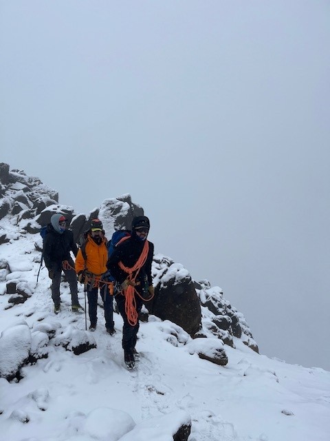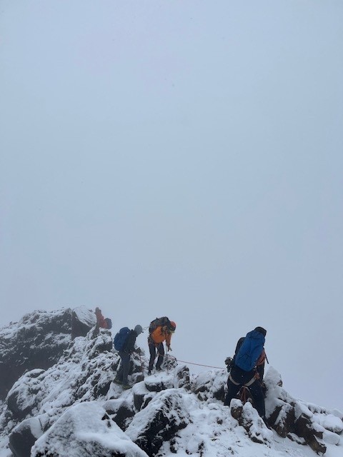 11,000' Camp, so we took full advantage. There was no up and attem this morning, as we let our bodies sleep, and waited until 9am to indulge in a eggs and hashers feast. We had a little bit of sun midday, but most of the day the mountain seemed to spit snow and coat us in clouds as we practiced some climbing skills that are pivotal for the coming days. Not much else to report from a day of rest, and that’s a beautiful thing. We’re hopeful to carry tomorrow to a cache site at 13,600’, but the mountain will make the call in the morning.