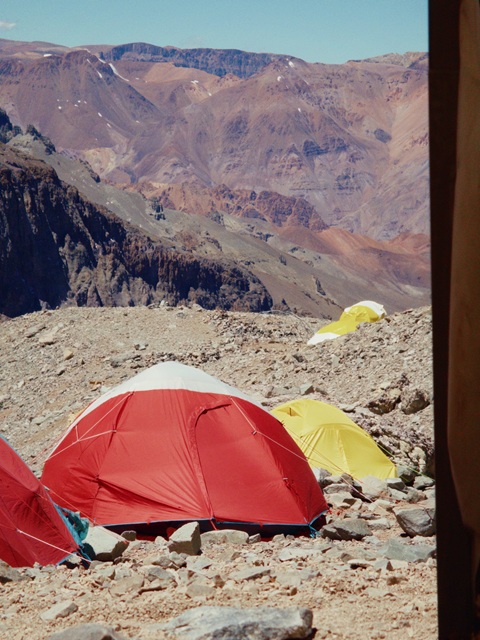 As I lay down in my tent after another eventful day on Aconcagua, I can hear what sounds like a freight train. And as I type that, the sides of the tent bend into my face as that freight train reaches camp — in the form of 40+ mph winds.