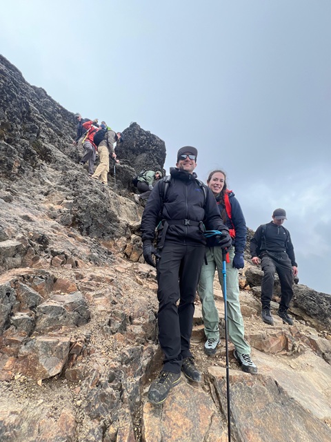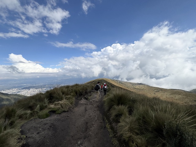 Started today before sunrise with a 6:00 a.m. departure from the hotel. We drove along scenic roads high into the hills around Quito and were rewarded with beautiful views of the city and some of the surrounding volcanoes, including our future objectives: Cayambe and Cotopaxi! When the road ended and we reached the trailhead, we began hiking toward Rucu Pichincha. We walked through gorgeous grasslands and scrambled over rocks, moving in and out of the clouds all day. A few hours and a few thousand feet later, we reached the summit (15,407 ft). After a quick descent back into warmer weather, we arrived at the top of the TelefériQo just before some afternoon thunder. We waited out a brief storm while enjoying coffee in the restaurant before taking the gondola back into town. Most of the team spent some time at the spa, testing their mental fortitude in the cold plunge before dinner. Another great day enjoying Ecuador and acclimating to the altitude!
