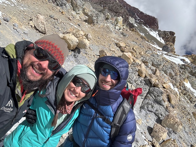 Today was redemption day for us with the weather. We had incredibly clear skies with moonlight to help illuminate the way. The team hit the trail right at midnight and slowly made our way uphill, and I mean uphill. Seems no one here in Ecuador got the memo that we (North) Americans prefer switchbacks to lessen the steepness and make it easier. Anyway, the team did great and 4 of the 6 climbers were able to stand on top for sunrise this morning. 19,347 feet to be exact. If that sounds familiar it’s because it’s 7 feet higher than Kilimanjaro!