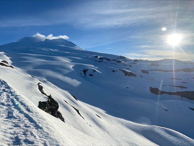 The Four Day Climb led by RMI Guides Brent Okita, and Ben Ammon reached 12,200' feet before turning due to unstable snow on the route. Some of the team also took advantage of the beautiful weather to learn additional mountaineering skills at Ingraham Flats.
