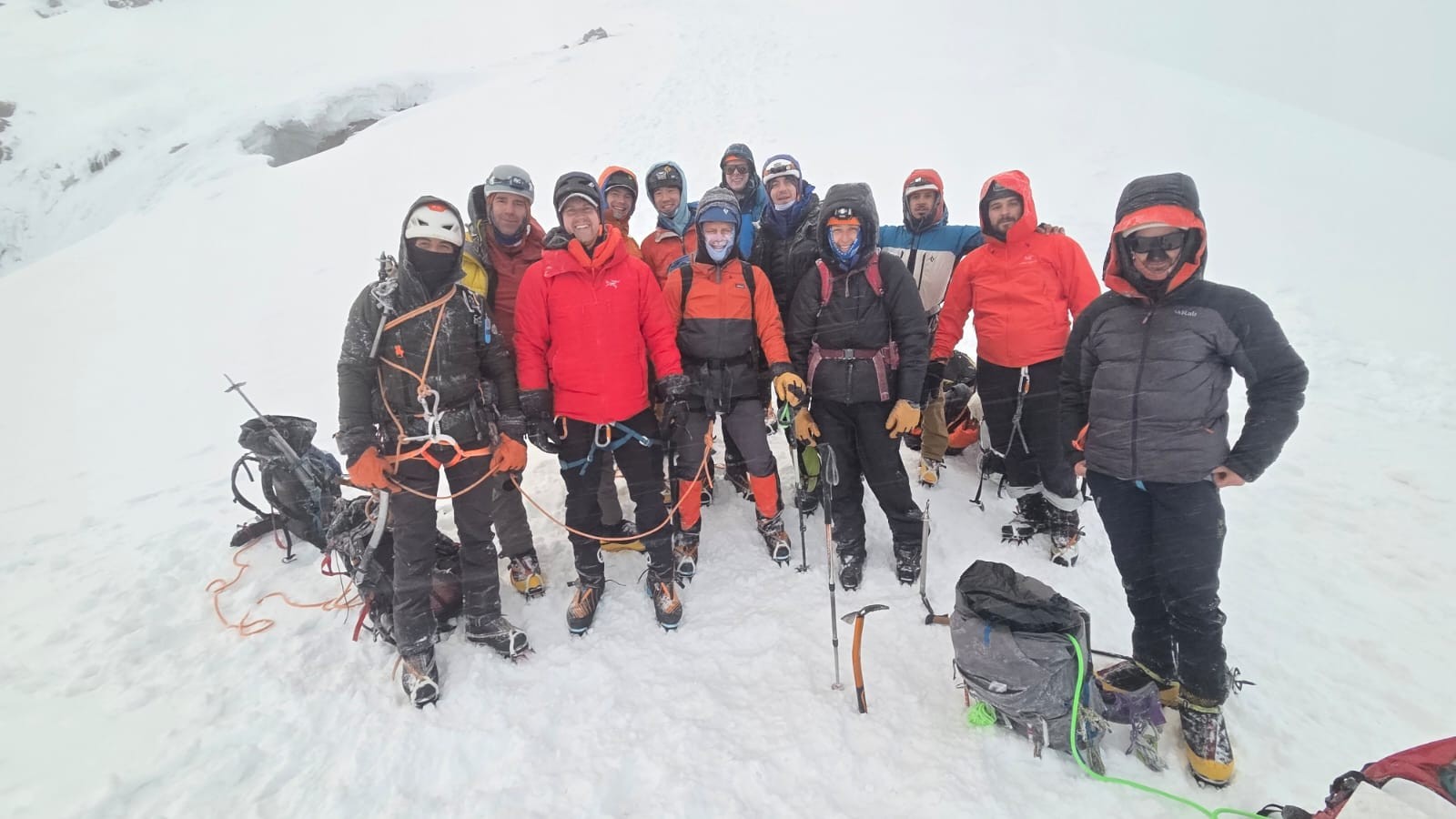 Such is life in the mountains; the team did great, and we enjoyed a spectacular day of climbing. But we were kept ~250 feet away from topping out on the true summit. We dubbed our high point 'cumbre (summit) de los gringos.' Everyone was content with our climbing experiences today, and the great experiences of the entire trip to Ecuador.