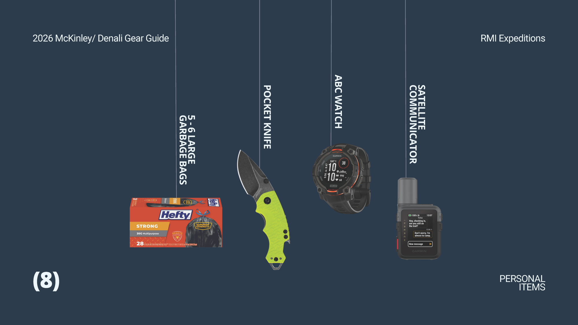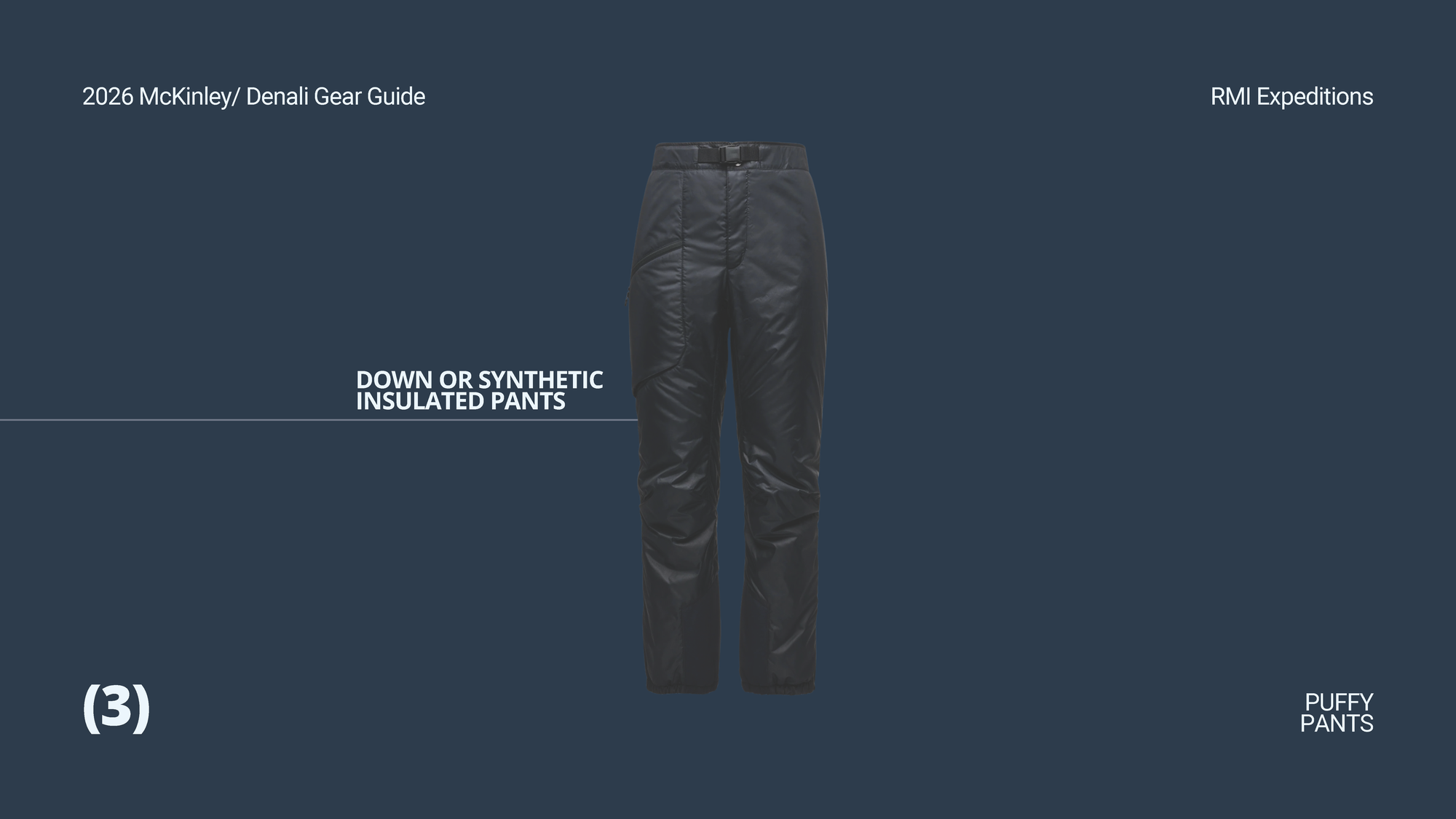 For an in-depth look at Gear and Apparel for McKinley, check out our webinar with Pete Van Deventer, senior RMI Guide and head of our Alaska Divison
