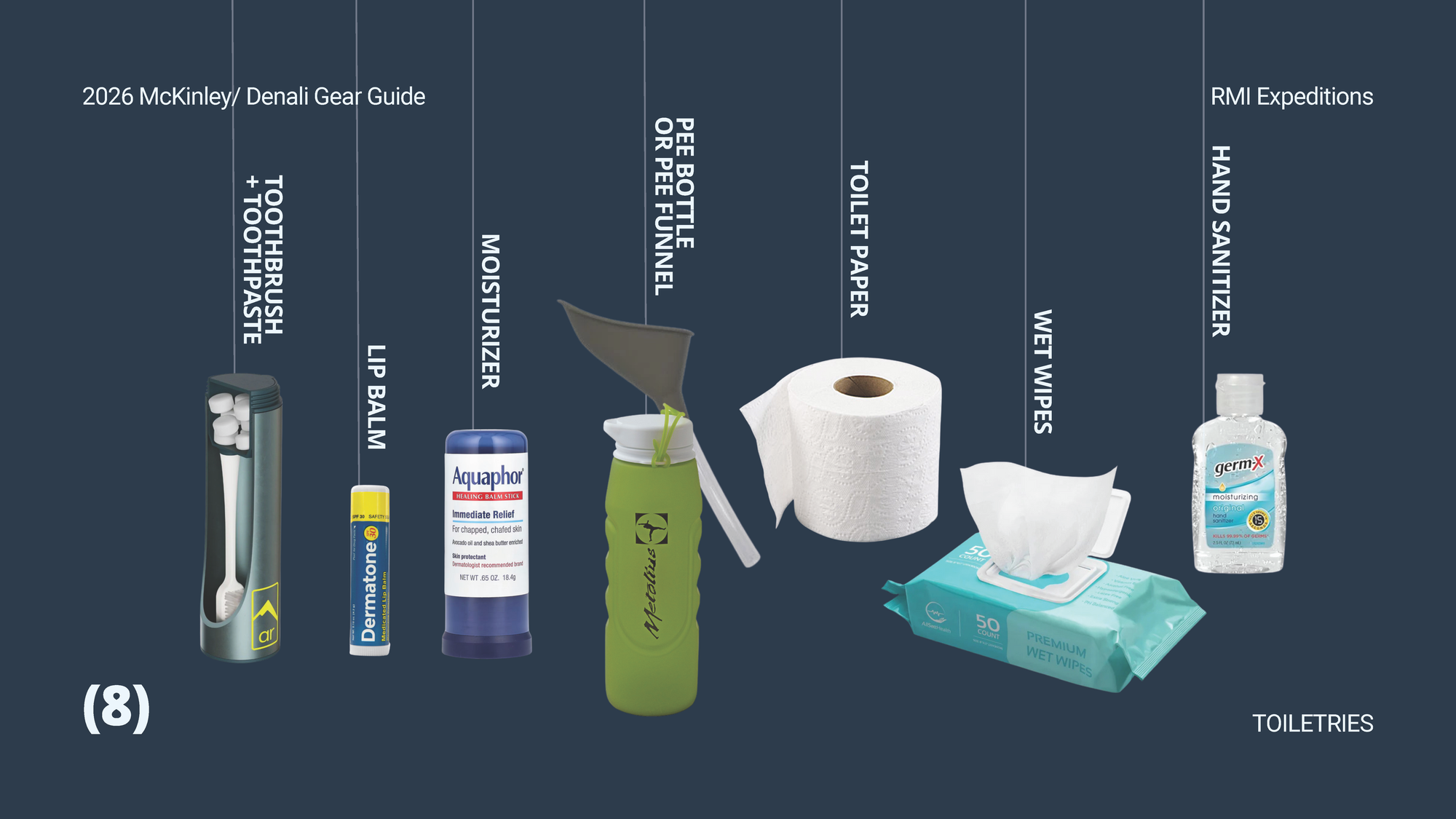 When embarking on a McKinley expedition, having the right miscellaneous items can make a significant difference in your overall comfort and safety. Beyond the essential gear and apparel, these items address crucial needs such as first aid, personal comfort, and emergency communication. This section covers the additional equipment and personal items that you'll need to ensure a smooth and enjoyable climb. By paying attention to these details, you can better prepare for the diverse challenges of high-altitude mountaineering and make your McKinley adventure a success.